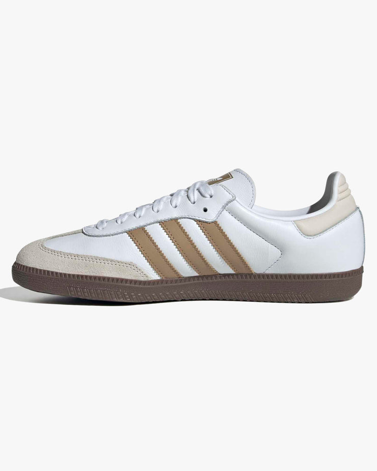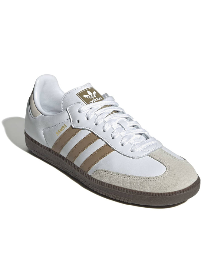 The adidas Samba stays true to its sporting roots while remaining a streetwear classic. Born on the pitch, this iconic trainer features a soft full-grain leather upper with suede overlays and gold-foil “Samba” detailing for a heritage look. A textured gum rubber cupsole and midsole provide grip and durability, while the synthetic leather lining ensures comfort with every step. Finished with the signature suede T-toe design and timeless colourway, the Samba remains a staple of authentic adidas style.