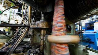 The first collections were made on 1970s knitting machines which were slow and unreliable but able to create intricate designs and textures. These machines are now rare and the spare parts are very hard to find but modern alternatives have been built and the team are able to replicate the feel of the old looms without worrying about machinery parts falling off.