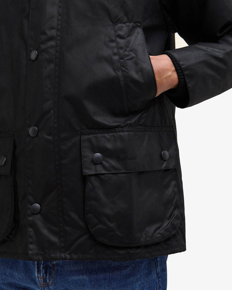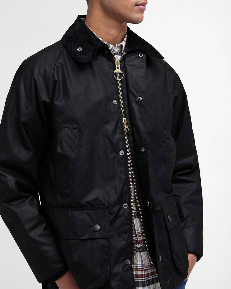 True to Barbour tradition, the jacket features a brass two-way ring-pull zip with a studded ‘Stormfly’ front, two large bellows pockets, and soft moleskin-lined handwarmer pockets for added comfort. The classic corduroy collar includes studs for a throat flap, offering protection against the elements. Its practical yet refined design has made the Bedale® a favourite across generations. Still handcrafted in the North East of England, the Bedale® remains a symbol of enduring country style and authentic functionality.
