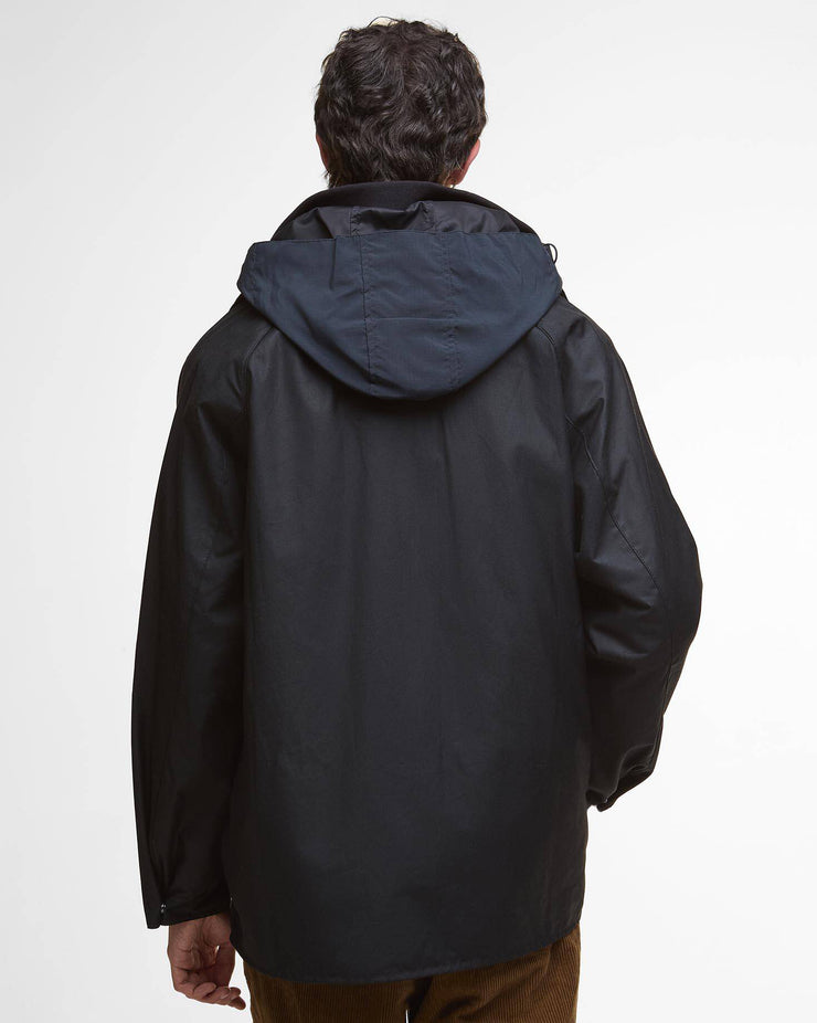 Crafted from 6oz Sylkoil waxed cotton, it offers dependable weather resistance and a classic matte finish that softens beautifully with age. The jacket features a traditional corduroy collar, a detachable fabric hood, and spacious lower bellow pockets for utility and comfort. Inside, a cotton tartan lining with a nylon drip strip pays homage to Barbour’s timeless design language. Finished with tonal Barbour embroidery on the wearer’s left pocket flap, the Modified Solway balances heritage craftsmanship with enduring style.