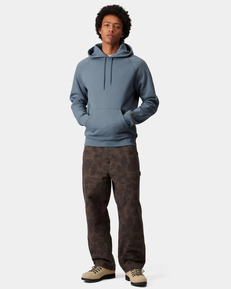Designed with raglan sleeves for improved movement, the hoodie features flatlock stitching for strength and a clean finish. A kangaroo pocket adds functionality, while the embroidered ‘C’ logo on the left sleeve gives a subtle nod to Carhartt’s iconic branding. With its regular fit and timeless design, the Hooded Chase Sweatshirt is a versatile essential for daily wear.