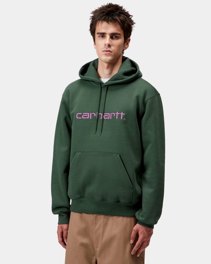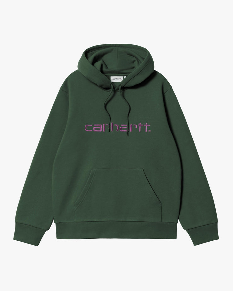 It features an adjustable hood, a kangaroo pocket, and ribbed trims for structure. Finished with the embroidered Script Logo at the chest, it delivers a clean Carhartt WIP signature look.