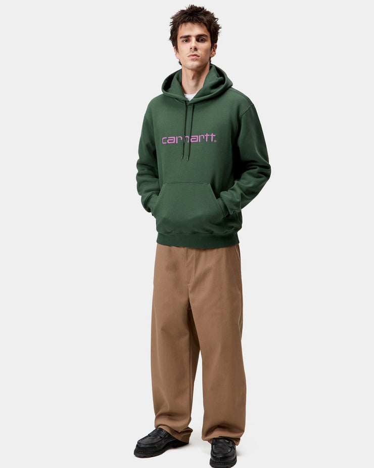 The Hooded Carhartt Sweatshirt is a relaxed staple, made from heavyweight brushed polycotton jersey with a soft fleece-like backing for warmth and comfort. Cut in a loose fit, it’s designed for everyday wear with a laid-back silhouette.