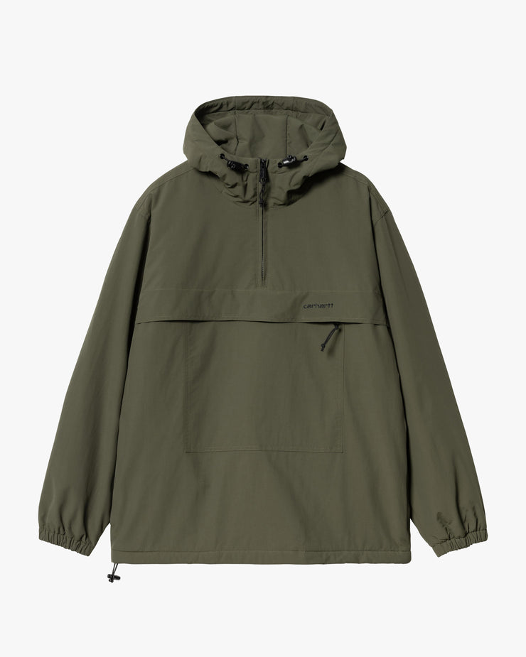 Details: Water-repellent fabric, adjustable hood and hem, elasticated cuffs, large front pocket with hidden zip closure, two zipped side pockets, Carhartt WIP script embroidery