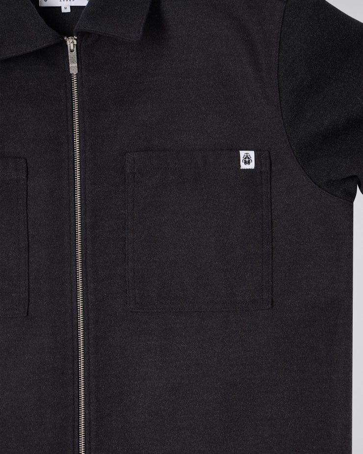 The EDWIN Snug Overshirt LS combines functional design with a rugged workwear aesthetic, making it an ideal layering piece for cooler days. Constructed from a dense 400g/m² marl flannel, the fabric blends polyester, viscose, and elastane for warmth, durability, and a comfortable hint of stretch. The result is a substantial overshirt with a soft, textured hand and dependable structure.