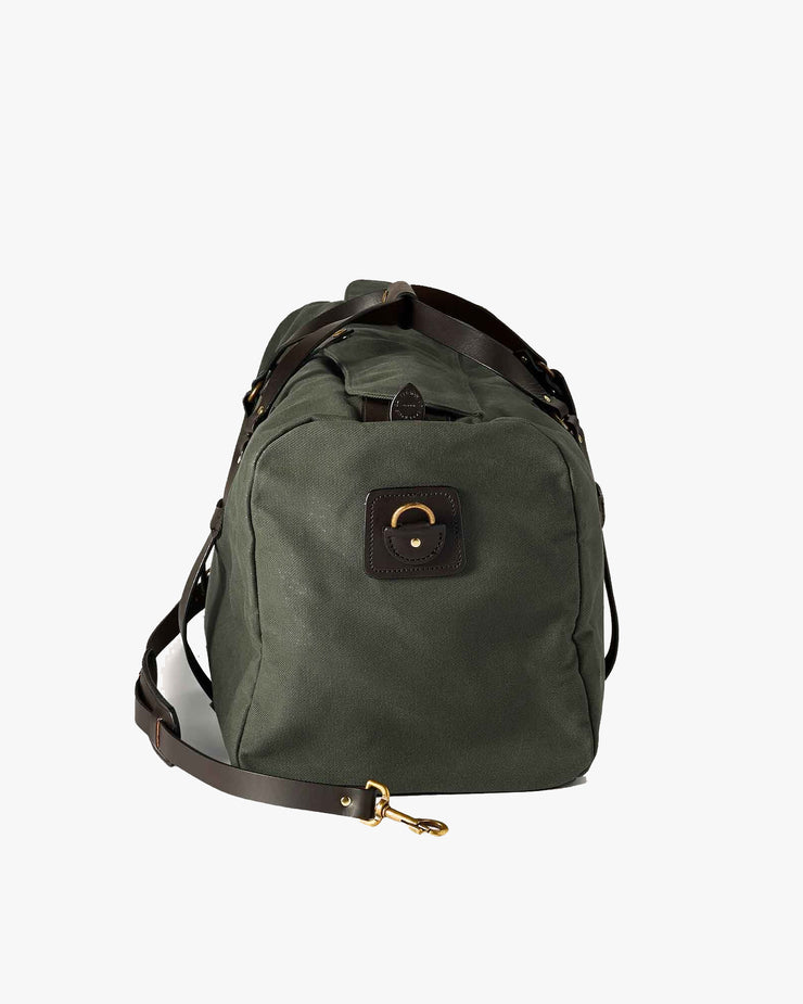 The Large Rugged Twill Duffle is crafted from water-repellent, abrasion-resistant Rugged Twill for lasting durability and performance. Premium Italian cow leather carry straps wrap completely around the bag for exceptional strength when carrying heavy loads, while the adjustable, removable leather shoulder strap allows for comfortable shoulder or cross-body wear. Built for travel and field use, this duffle is designed to withstand years of demanding use.