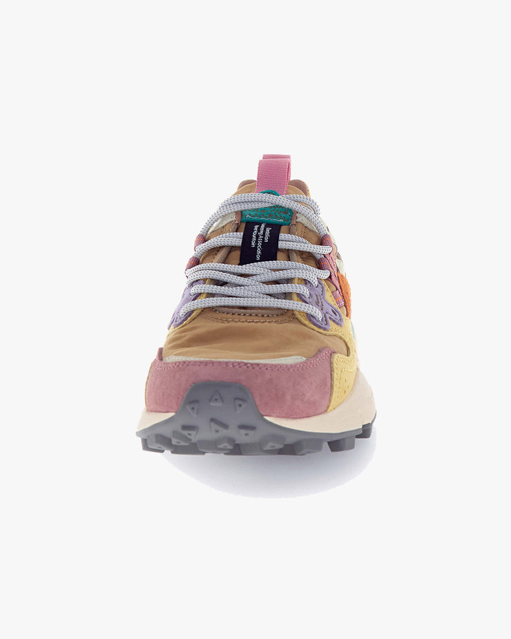 Blending outdoor utility with urban style, the Yamano 3 sneaker is built for performance and personality. A technical fabric upper is layered with multicoloured suede inserts, creating a dynamic, textured look. Trekking-style laces thread through reinforced eyelets, including a distinctive floral-shaped detail, reinforcing the design’s rugged inspiration.