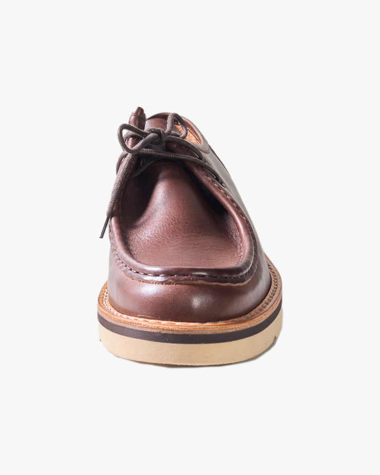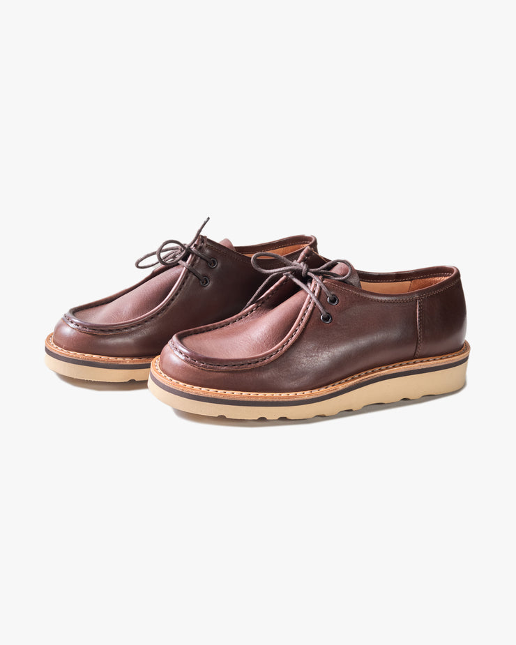 Every detail — from the burnished black eyelets, brown midsole and Piatto Natural welt to the round Mimoso brulee and rosso red laces — speaks to Fracap’s dedication to handmade precision and understated elegance. The result is a shoe that bridges rugged practicality with timeless Italian design, made to last for years to come.