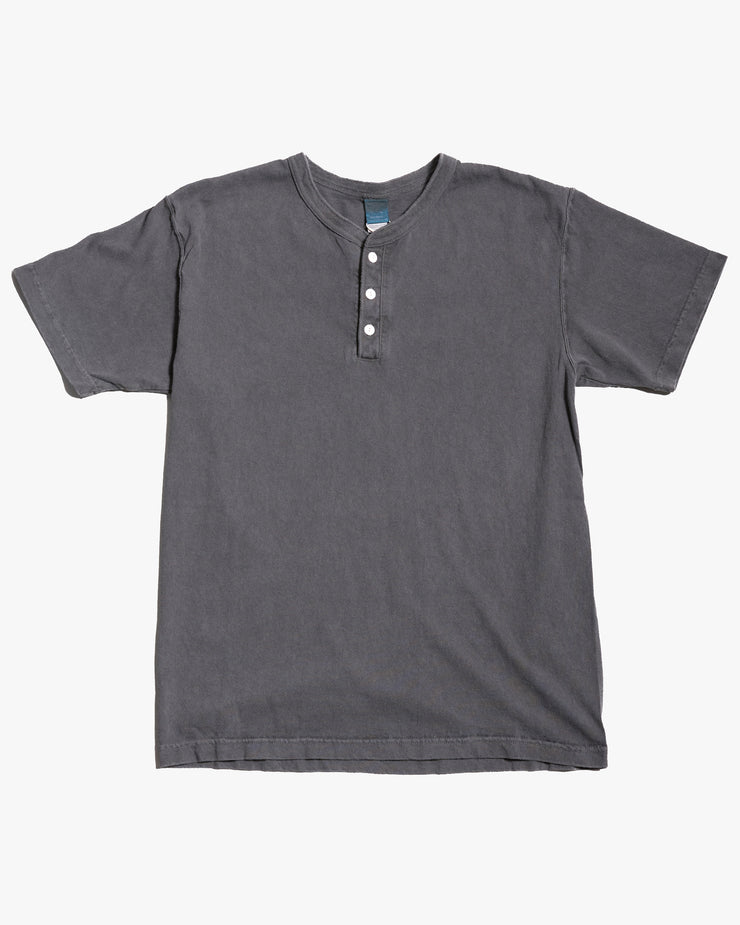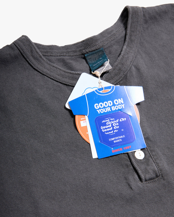 This Henley neck T-shirt from Good On takes a rugged, masculine staple and refines it into an easy everyday essential. Inspired by classic sports, military, and workwear styles, it balances toughness with subtle detailing, making it versatile enough to wear as a simple alternative to a crew or V-neck. The front placket and neck ribs are deliberately narrowed, while flat seam construction around the neckline softens the look, lending a calm and understated impression to an otherwise utilitarian piece.