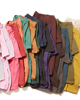 Attention to detail runs throughout: double-needle cover seaming reinforces the armholes, hem, cuffs, and ribbed collar, while tape reinforcement across the back of the neck and shoulders prevents stretching over time. The long stitch pitch recalls the character of vintage American T-shirts, enhancing the texture of the fabric as it ages. Available in both reactive dye and pigment dye finishes, the shirt offers two distinct looks. Reactive dye provides a rich, even colour with refined depth, while pigment dye fades uniquely with wear, developing a vintage patina that grows more beautiful over time.