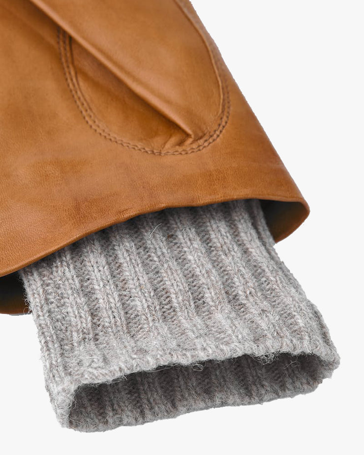 The Megan glove is a refined women’s leather accessory that balances timeless elegance with everyday functionality. Sewn from supple Italian lamb nappa, the leather has a natural sheen and soft hand feel, creating a sleek, close-fitting silhouette. Inside, a thin knitted wool-blend lining provides gentle warmth, making the glove ideal for spring, autumn, and mild winter days. The design is finished with half piqué seams around the fingers for a delicate look and durability, while the long ribbed wool cuff offers both comfort and contrast against the leather. Subtly stamped with the Hestra logo on the side, the Megan glove is a versatile and stylish piece suited to both casual daily wear and special occasions.
