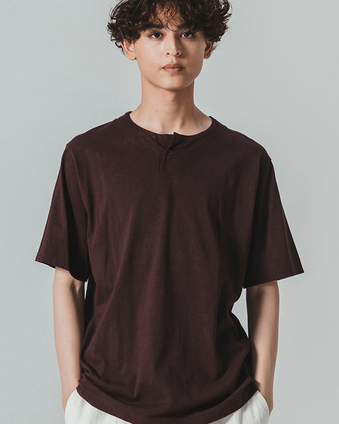 The Henleyneck T-shirt is a Made in Japan piece that reflects Jackman’s deep baseball heritage. Crafted from 100% American cotton spun with an air-spinning method, the fabric has a dry, slightly rough hand feel with a rugged surface texture, enhancing its natural character.