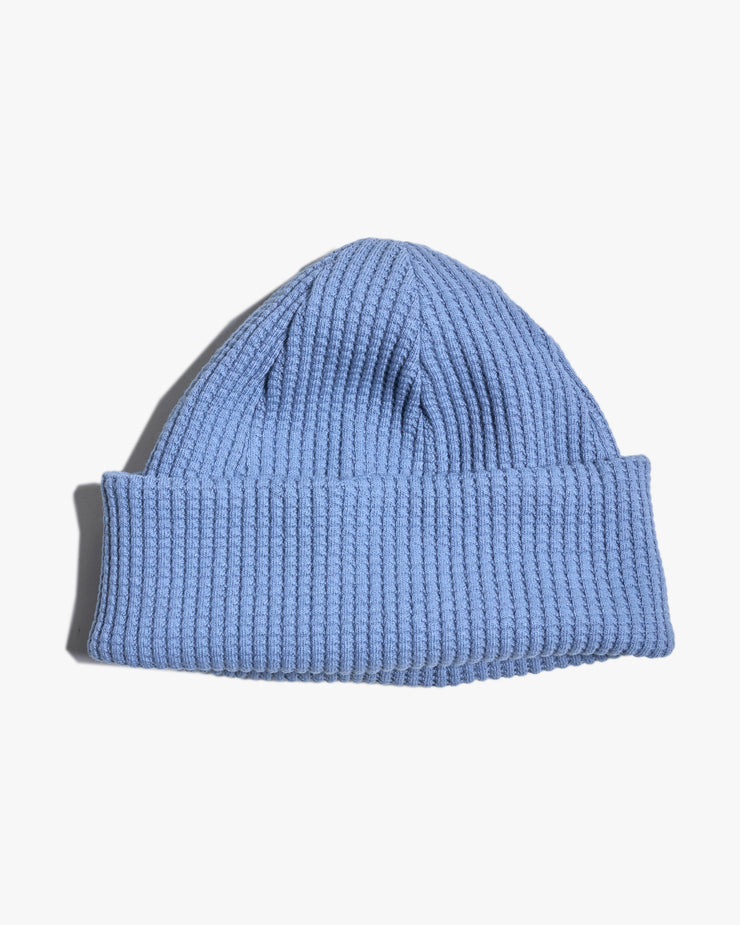 To ensure longevity, the waffle fabric is first relaxed before cutting and sewing, reducing distortion and shrinkage over time. This careful preparation means the cap keeps its shape even after repeated wear and washing. Designed with a slightly extended tip at the crown, it creates a relaxed, casual silhouette when worn. Soft yet durable, it’s a knit cap built for everyday use with thoughtful craftsmanship at its core.