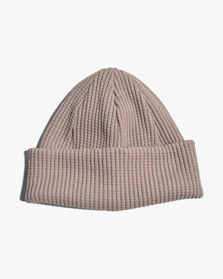 To ensure longevity, the waffle fabric is first relaxed before cutting and sewing, reducing distortion and shrinkage over time. This careful preparation means the cap keeps its shape even after repeated wear and washing. Designed with a slightly extended tip at the crown, it creates a relaxed, casual silhouette when worn. Soft yet durable, it’s a knit cap built for everyday use with thoughtful craftsmanship at its core.