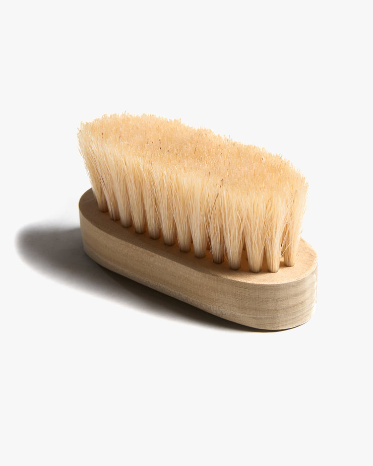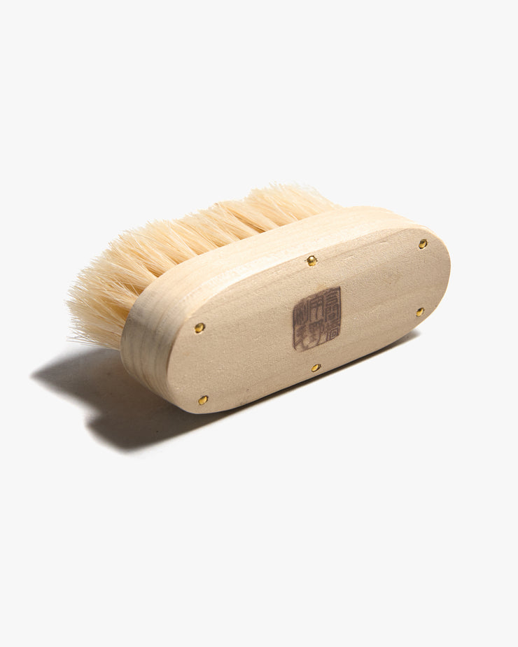 Constructed using the traditional hake technique, the brush is formed from separate pieces of wood. Each strand of hair is carefully inserted by hand into drilled holes, ensuring tightness and durability, before the pieces of wood are bonded together. This handmade process creates a brush that produces a rich, thick lather when used with soap, offering deep pore cleansing, gentle exfoliation, and stimulation of blood circulation. Originally developed for a range of practical uses ā from body and face care to caring for fabrics, suits, and shoes ā this brush embodies a heritage of thoughtful design adapted for modern life.