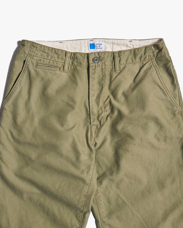 Japan Blue’s JBPT1026 Regular Fit Trousers reinterpret the classic chino through a distinctly Japanese lens. Cut from a densely woven 100% cotton canvas, the fabric feels dry, grippy, and reassuringly robust, yet maintains an understated elegance that elevates them beyond everyday basics. The fit strikes a clean balance: relaxed through the top for easy movement, tapering gently toward the hem to keep the silhouette sharp and contemporary.