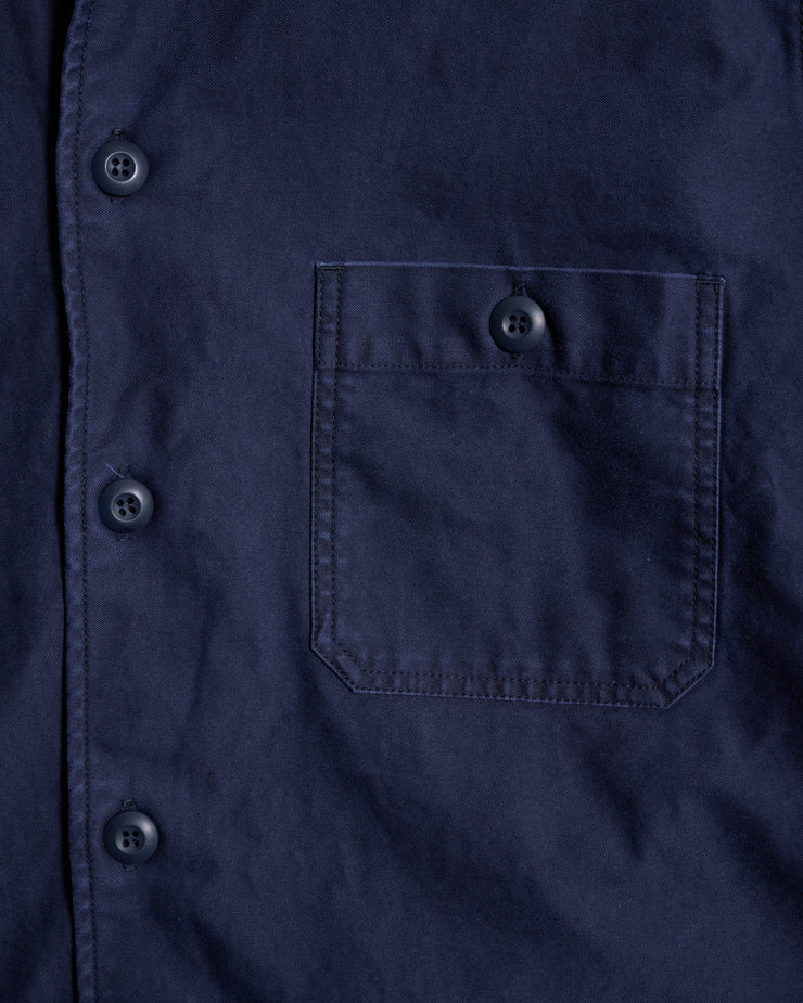 Functional chest pockets anchor the design, staying true to its field-inspired roots, while adjustable cuffs allow for subtle fit adjustments. Finished in a rich olive tone, it transitions seamlessly between roles, worn as a lightweight jacket over a tee or as a substantial overshirt layered under heavier outerwear. Made in Japan, it’s a practical piece elevated by thoughtful construction and understated detailing.