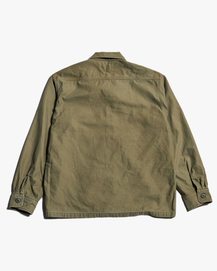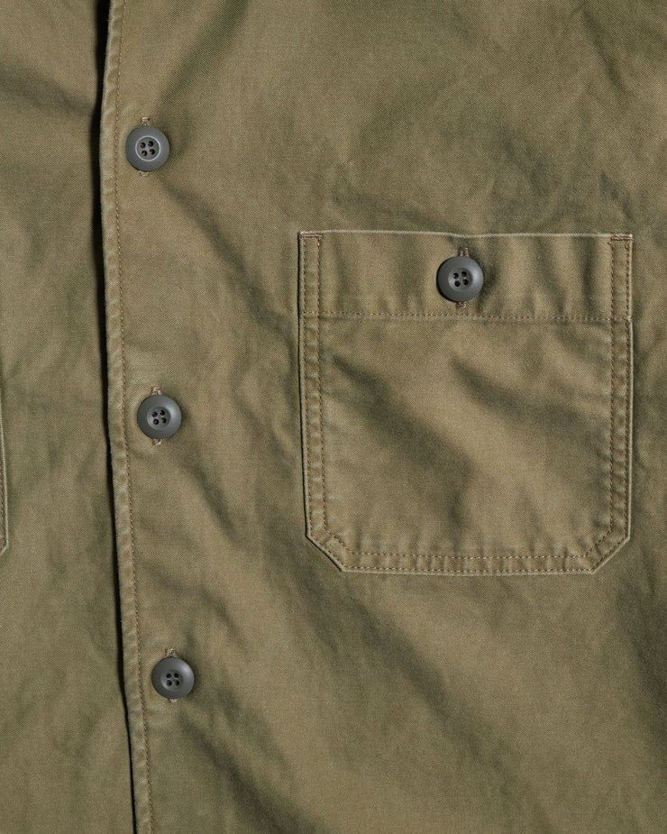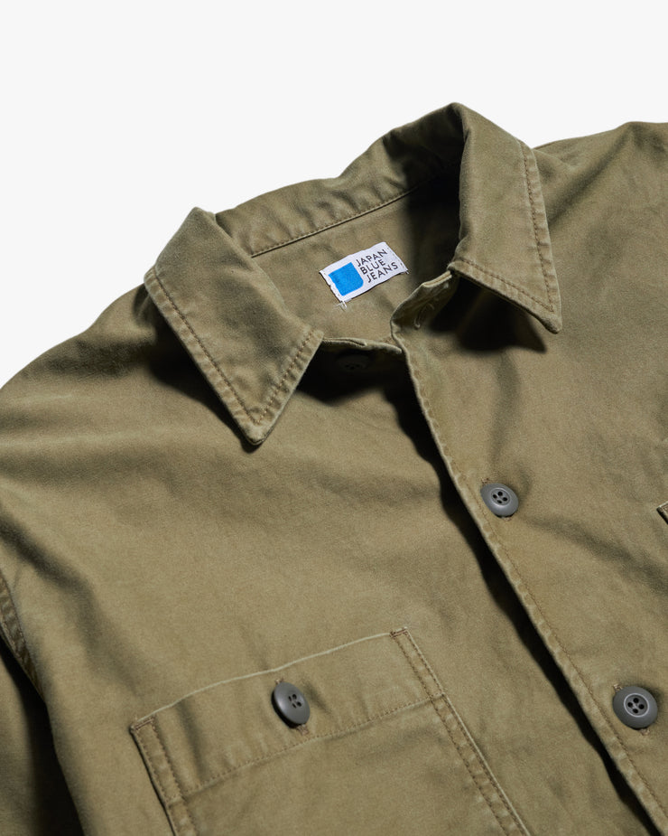 Functional chest pockets anchor the design, staying true to its field-inspired roots, while adjustable cuffs allow for subtle fit adjustments. Finished in a rich olive tone, it transitions seamlessly between roles, worn as a lightweight jacket over a tee or as a substantial overshirt layered under heavier outerwear. Made in Japan, it’s a practical piece elevated by thoughtful construction and understated detailing.