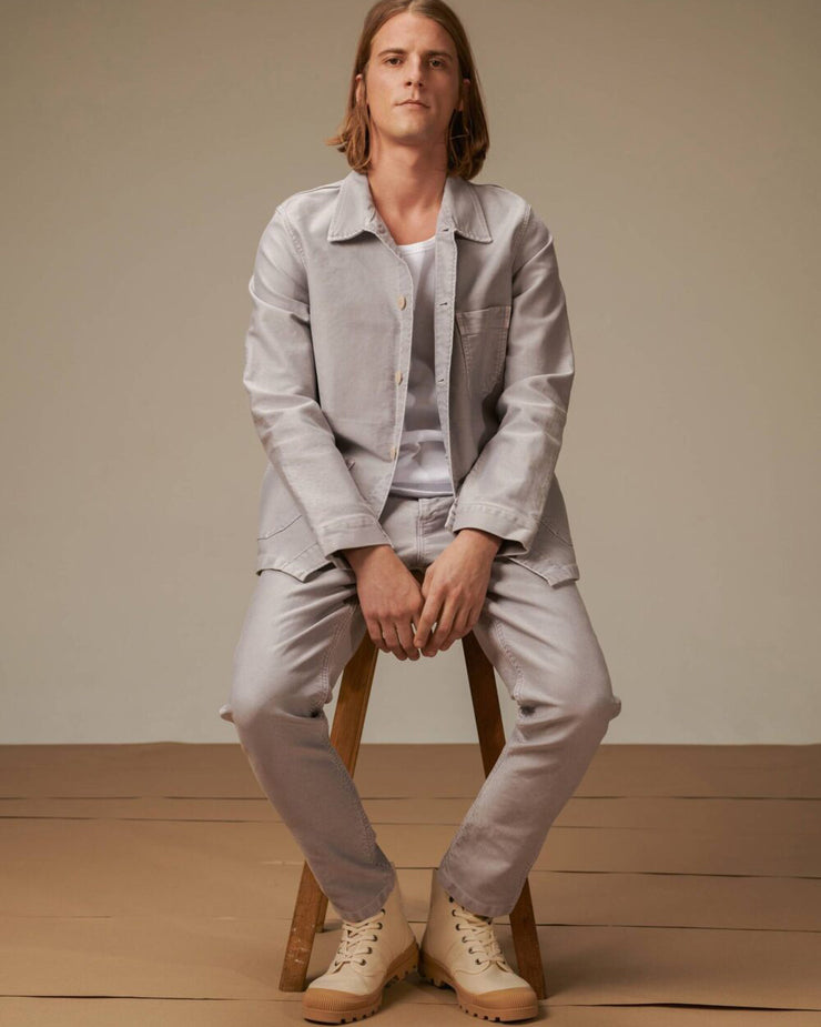 For lovers of retro workwear, the vintage washed work jacket is the essence of authentic style. Treated with a unique washed finish that mimics the wear and tear of time, it combines the look of a vintage garment with strength and enhanced comfort. This textile finishing process ages the fabric in a controlled manner, giving the jacket a soft texture and unique aesthetic, while preserving its quality and durability. Each jacket bears a hand-numbered label, affirming its unique status.