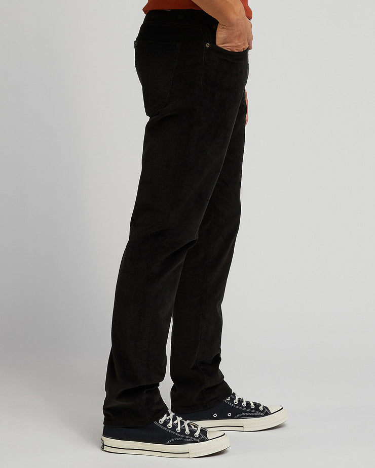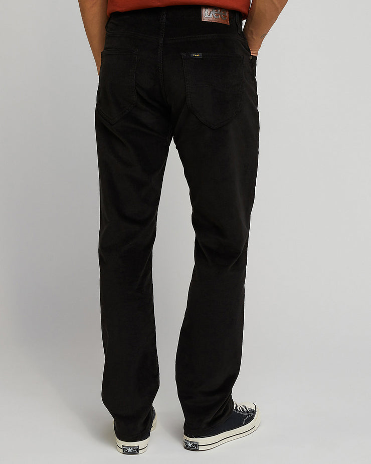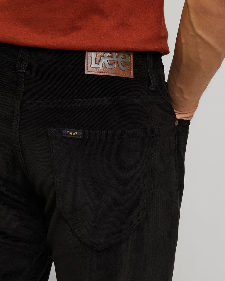 Crafted from lightweight 14-wale corduroy with 26% recycled polyester, the fabric is soft yet durable, offering high stretch for unbeatable flexibility. Finished in timeless black, this versatile pair works effortlessly for both casual and smarter looks. Completed with classic five-pocket styling, heritage stitching, a Lee back patch and logo buttons.
