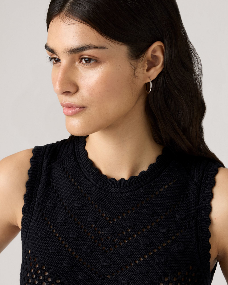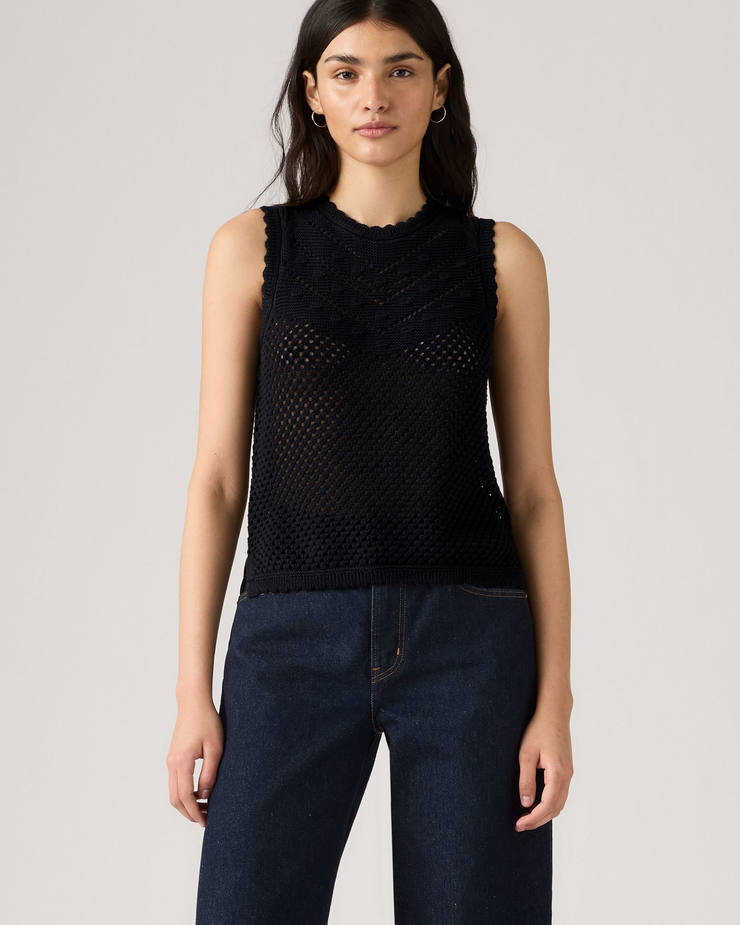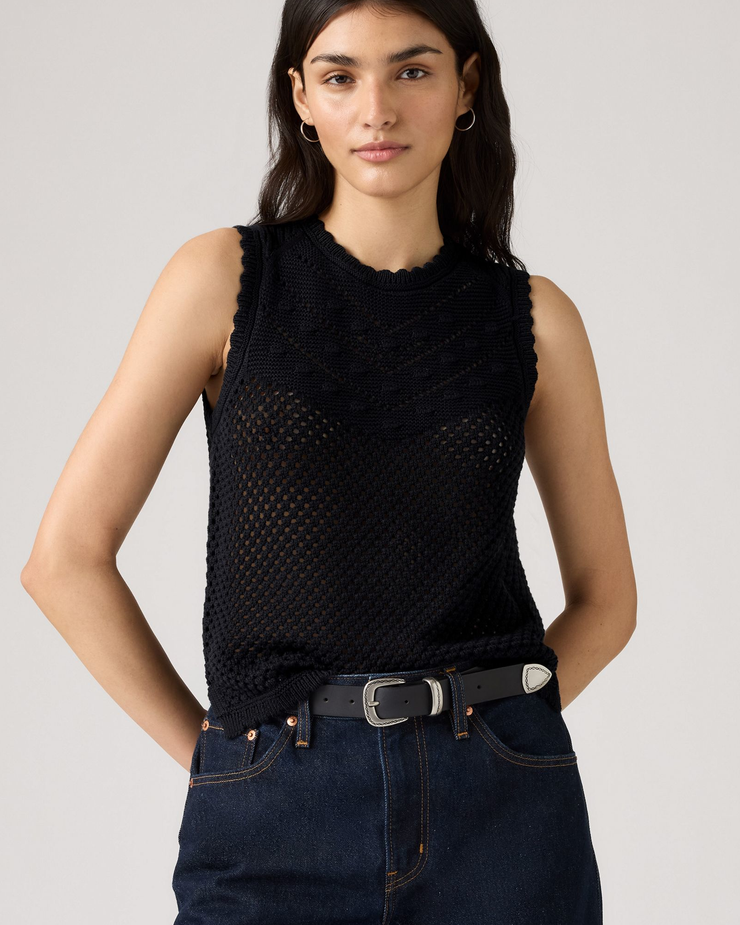 Levi's® Adrienne Crochet Tank blends a playful spirit with effortless ease. Designed with a crochet-trimmed high neckline, a soft knit construction and a sleeveless cut, it’s a versatile piece that works perfectly on its own or layered for a relaxed, stylish look.
