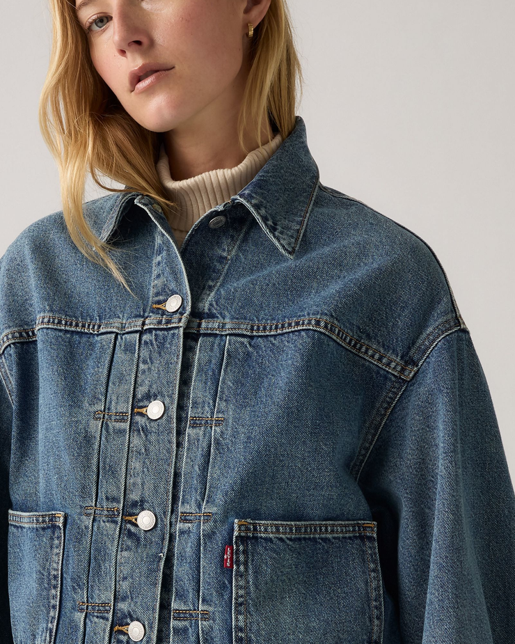 Levi's® took the iconic Trucker Jacket and reimagined it with balloon sleeves for a distinctly vintage-inspired look. This Balloon-Sleeve Trucker Jacket combines a relaxed fit with a classic button-up front, making it an easy layering piece that balances timeless style with playful detailing.