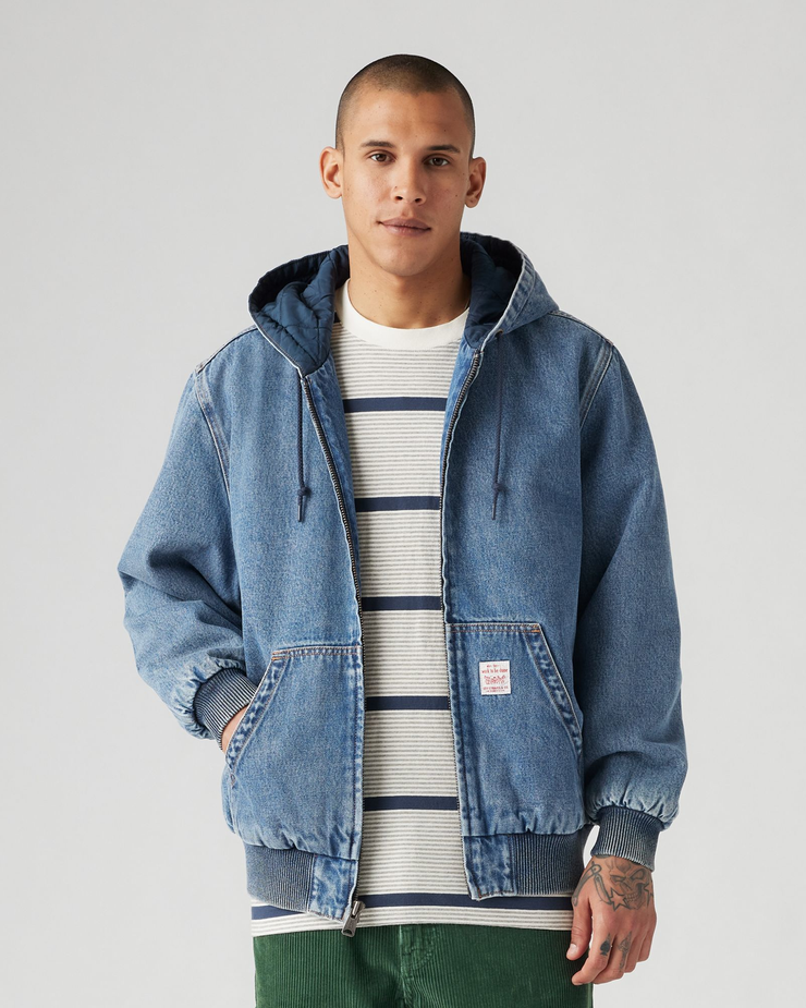 Levi’s® has always pushed denim into new territory—from the world’s first jeans to the iconic Trucker Jacket. Now, that same spirit lives on in the Potrero Denim Hoodie. Blending classic hoodie styling with the rugged character of denim, it’s finished with a quilted lining for extra warmth and comfort. A zippered front, ribbed details and an interior chest pocket complete the upgrade.