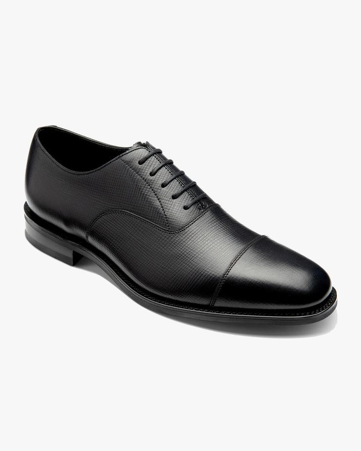 The Loake Aldwych is a refined expression of timeless British shoemaking, embodying Loake’s enduring commitment to craftsmanship and understated elegance. This classic toe-cap Oxford is crafted from premium black grain calf leather, offering both texture and depth to a formal staple. Built on the Capital last — a medium-width shape with a subtle chisel toe — it delivers a balanced, true-to-size fit that complements both business and occasion wear.