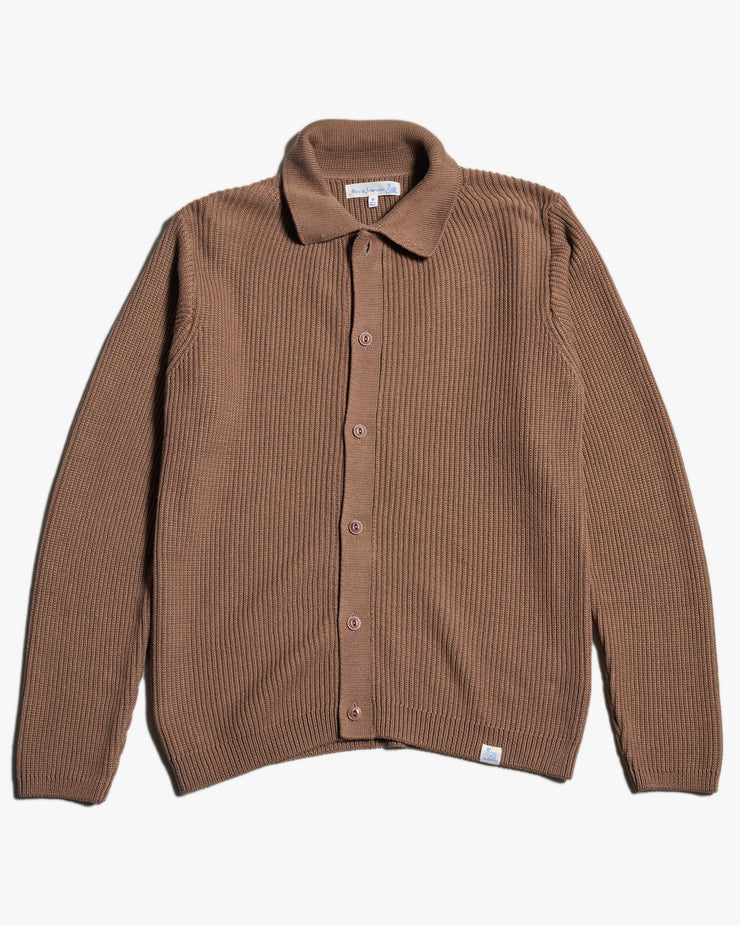 Designed with a relaxed fit, it features a knitted collar and corozo nut buttons that lend a subtle retro influence, interpreted with modern restraint. The swan loop label at the hem provides a discreet signature finish. Soft yet structured, it’s an elevated everyday piece that moves easily between casual and refined settings.