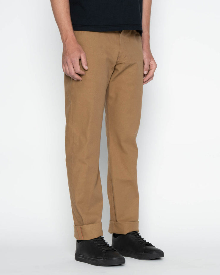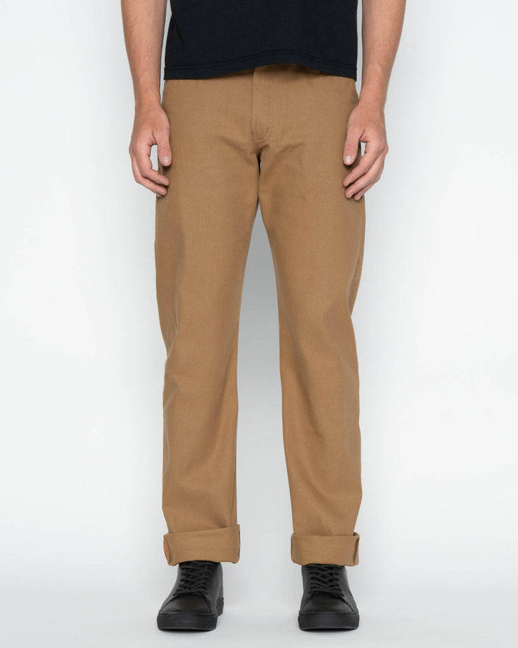 The Duck Canvas Selvedge is a 10oz Japanese duck canvas, woven on vintage shuttle looms in a tightly constructed plain weave. Known for its strength and durability, duck canvas was the original choice for workwear trousers before denim became the standard in the late 1800s. This fabric is smooth to the touch, making it less prone to snagging or tearing while retaining its hard-wearing character.