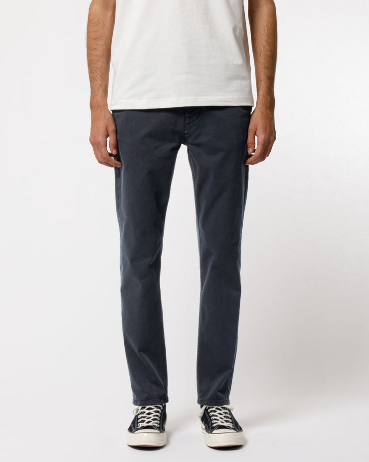 This slim fit chino blends modern tailoring with heritage-inspired craftsmanship. Made from organic comfort stretch twill, it offers a clean, durable finish that moves with you throughout the day. The slim tapered cut provides a contemporary silhouette with enough room through the leg to remain comfortable, while details like slanted front pockets, welt back pockets, and chain stitch hems nod to classic workwear. Its neat construction is enhanced by heavy tone-in-tone stitching in a medium-short stitch length, a subtle detail that adds character while reinforcing durability.