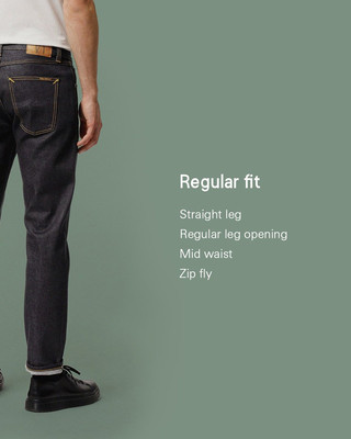 Gritty Jackson is a regular fit with a mid-waist and a zip fly. It is designed to sit at the hip and give room from the seat down to a regular leg opening. Its well-balanced legroom gives the fit a neat silhouette while also offering great comfort. This is a modern take on what Nudie consider to be the most classic jeans fit ever.