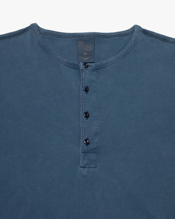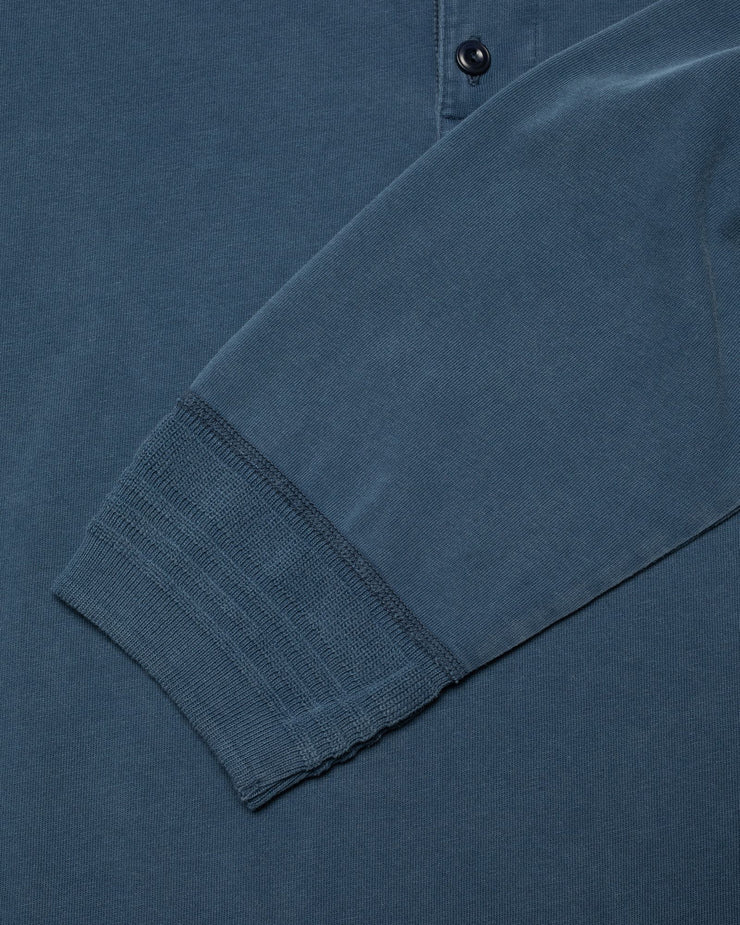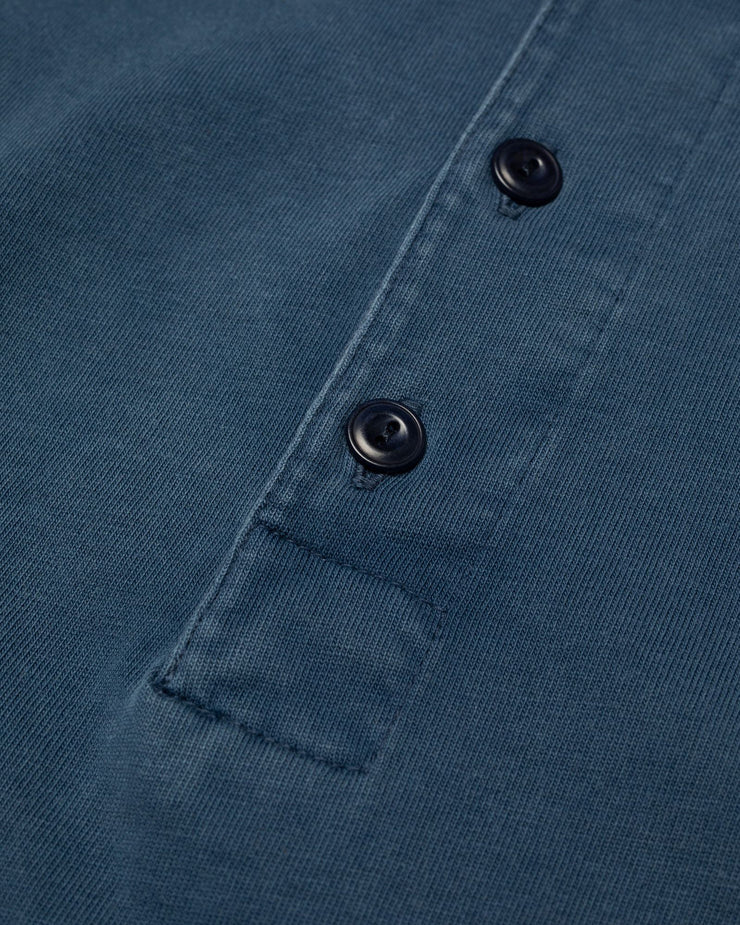 This classic long-sleeve henley is crafted from soft, clean organic cotton jersey for everyday comfort. Its beautiful faded blue shade comes from a garment dye process followed by a fade-out wash, creating a vintage-inspired look with a naturally lived-in character. Over time, the colour will continue to soften and fade, adding more personality with each wear.