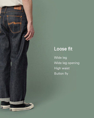 Tuff Tony is a loose fit with a high-waist and button fly. It is designed to sit at, or just above, the hip. Tuff Tony provides room over the seat down the entire leg. A slight taper from the knee down gives this fit a straight silhouette that doesn't flare, making it bold yet refined.