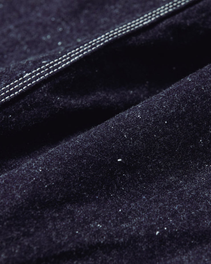 Cut from 11.5oz nep denim, this piece carries the rugged character of the 1930s. The nepped texture and softly napped surface echo the hard-wearing workwear once favoured by railroad workers in the early 20th century, giving the fabric a lived-in depth and an unmistakably vintage atmosphere.