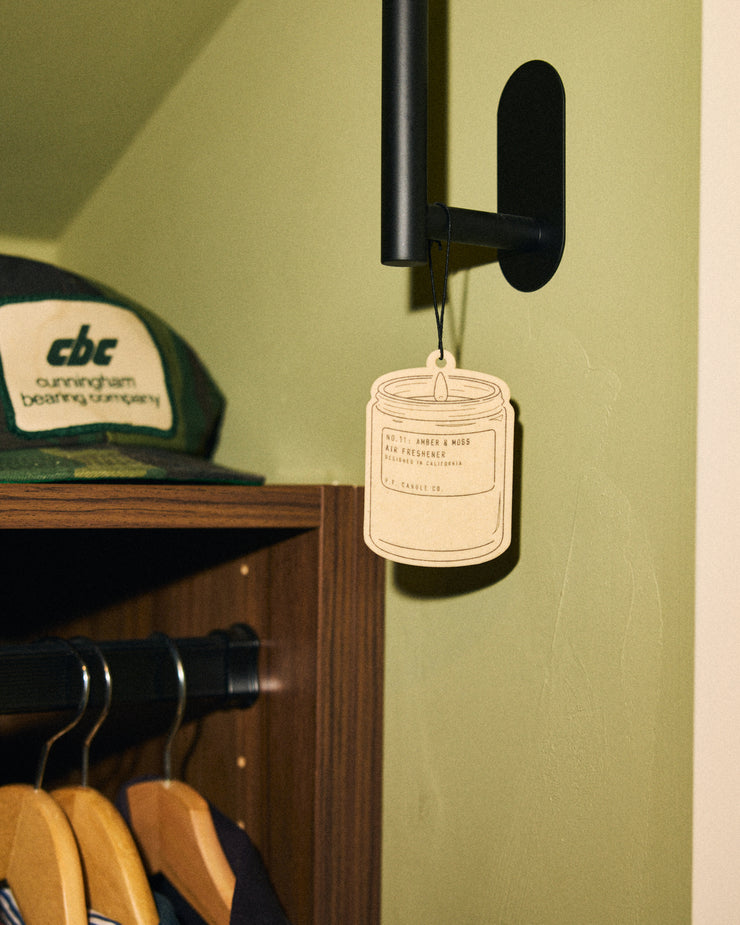 Moss and lavender open the scent with an earthy, calming freshness. The heart brings more dimension, blending sage, orange, and lavandin for a lightly herbal, slightly citrus lift that keeps things bright and open. As it settles, amber and musk round everything out, giving the fragrance a smooth, comforting finish that feels relaxed rather than perfumed. Designed to hang freely, these air fresheners work just as well in wardrobes, hallways, or small spaces as they do beyond the car, adding atmosphere without overwhelming it.