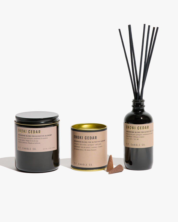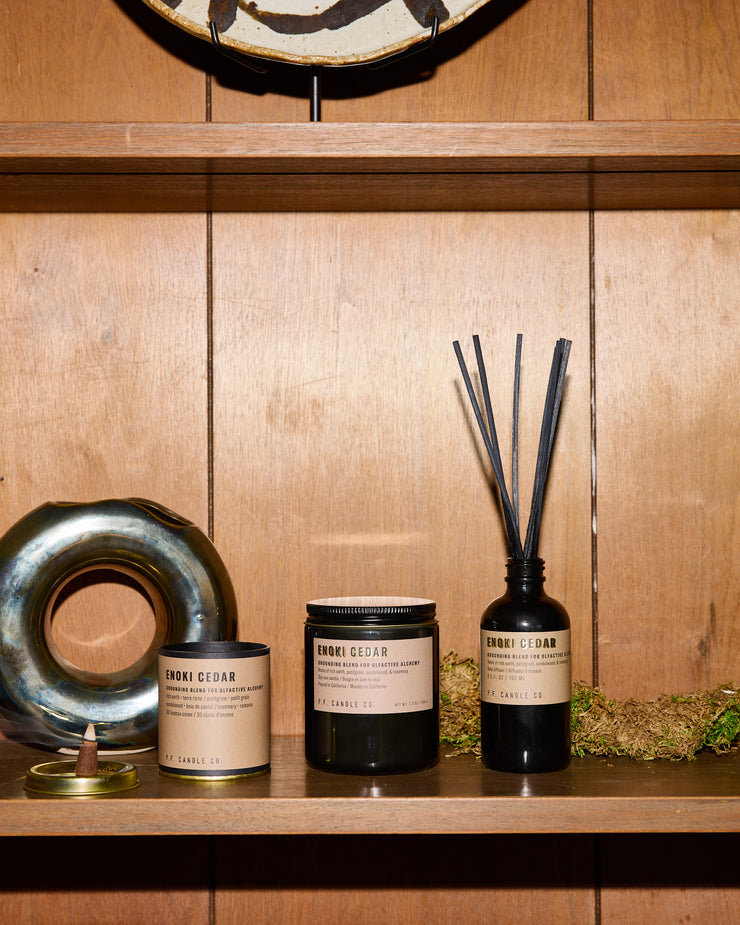 P.F. Candle Co. is a Los Angeles-based home fragrance company owned and operated by Kristen Pumphrey and Thomas Neuberger. P.F. believe that fragrance is an extension of your home design, and create high-quality products with accessible price points in mind.