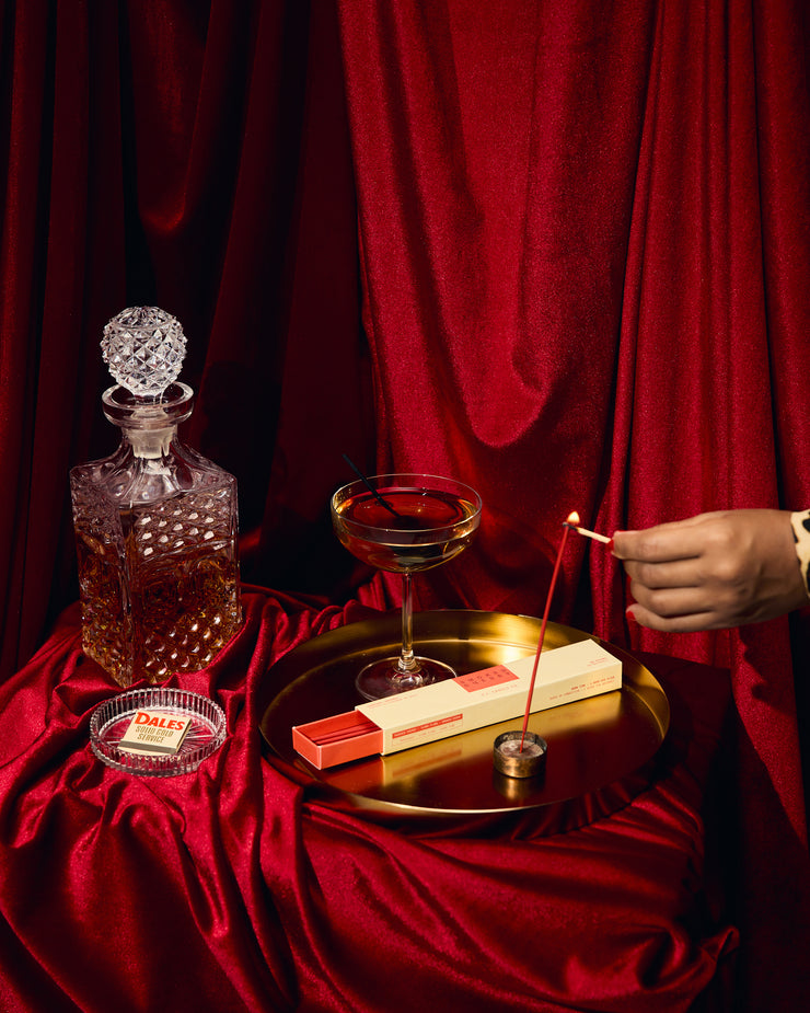 Light the end of the incense, and allow the flame to burn for approximately 10-15 seconds. Blow on the flame to extinguish. The incense should produce a glowing red ember and a tendril of smoke, and will continue to burn on its own. Burn incense on a heatproof, non-flammable holder only. Burn incense in a well-ventilated room, away from flammable materials, and never leave incense burning unattended or in near children, pets, or a draft.