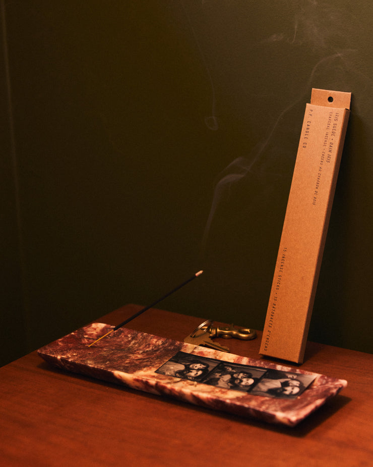 P.F. Candle's charcoal-based incense sticks are hand-dipped and fragranced in house by their Los Angeles team and packaged in kraft boxes. Incense quickly transforms a room: transformative smoke uplifts the space while the signature scents linger for hours even after extinguishing.
