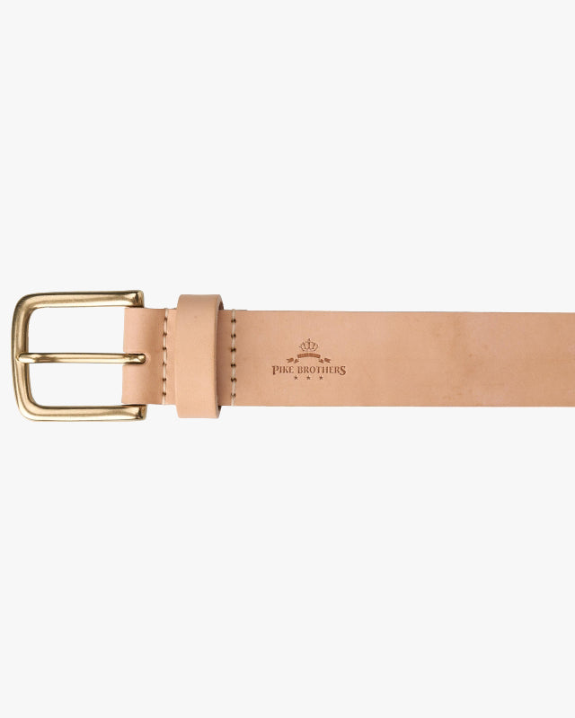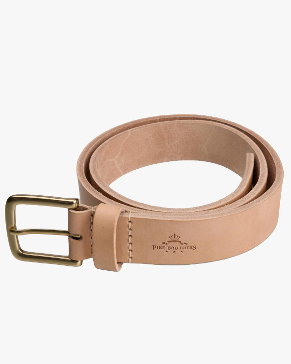 Construction details: 4cm belt width, solid brass buckle, embossed Pike Brothers logo, available in S/90cm, M/100cm and L/110cm
