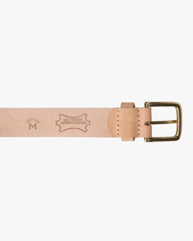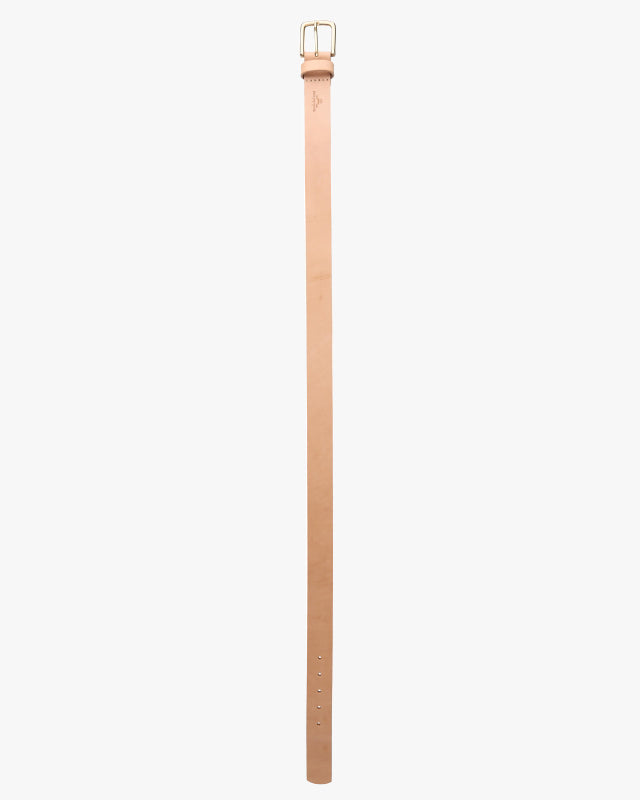 The 1936 Chopper Belt in Natural is a true heavyweight leather belt built to pair perfectly with substantial denim and rugged everyday wear. Designed with the hard-wearing character of classic workwear in mind, it has a powerful, uncompromising feel that rewards wear over time with rich patina and long-term durability.