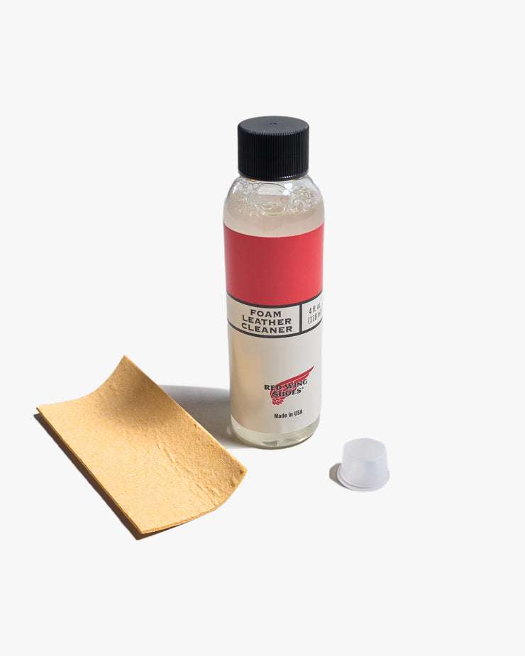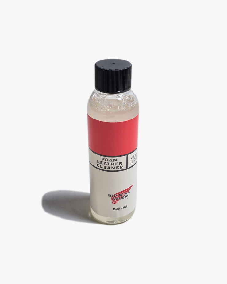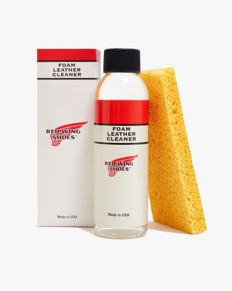 The Red Wing Foam Leather Cleaner is a versatile care essential designed to keep your leather footwear and accessories looking their best. This concentrated formula creates rich foaming suds when mixed with water, allowing it to lift dirt, remove stains, and refresh the surface without damaging the leather. Suitable for use on all types of smooth leathers, it helps maintain the natural character and finish of your Red Wing products over time.