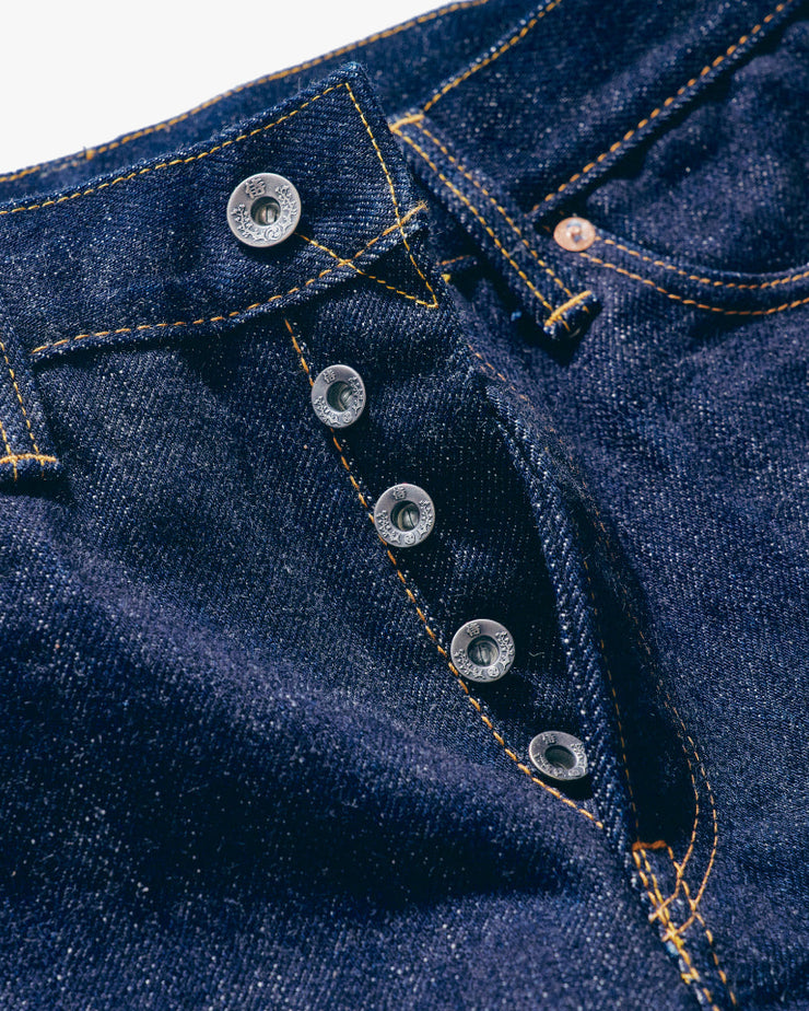 A 21oz slim model based on the Zero S5000VX. These are straight with no taper to the hem and a slightly shallow rise. A simple and beautiful silhouette that never goes out of style.
