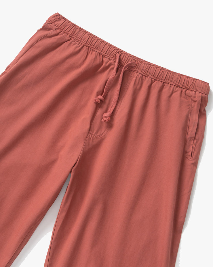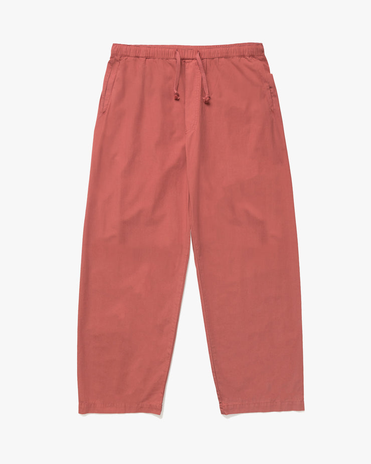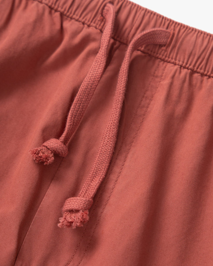Made from GOTS-certified 195gsm dense cotton poplin, the fabric is lighter and more breathable while retaining durability. Garment dyed for depth of colour and a soft, lived-in feel, they’re built to slot easily into everyday rotation. An adjustable waistband with drawstring ensures a flexible fit, while side slit pockets and a single rear patch pocket with woven label complete the practical design. Easy by name, dependable by nature.