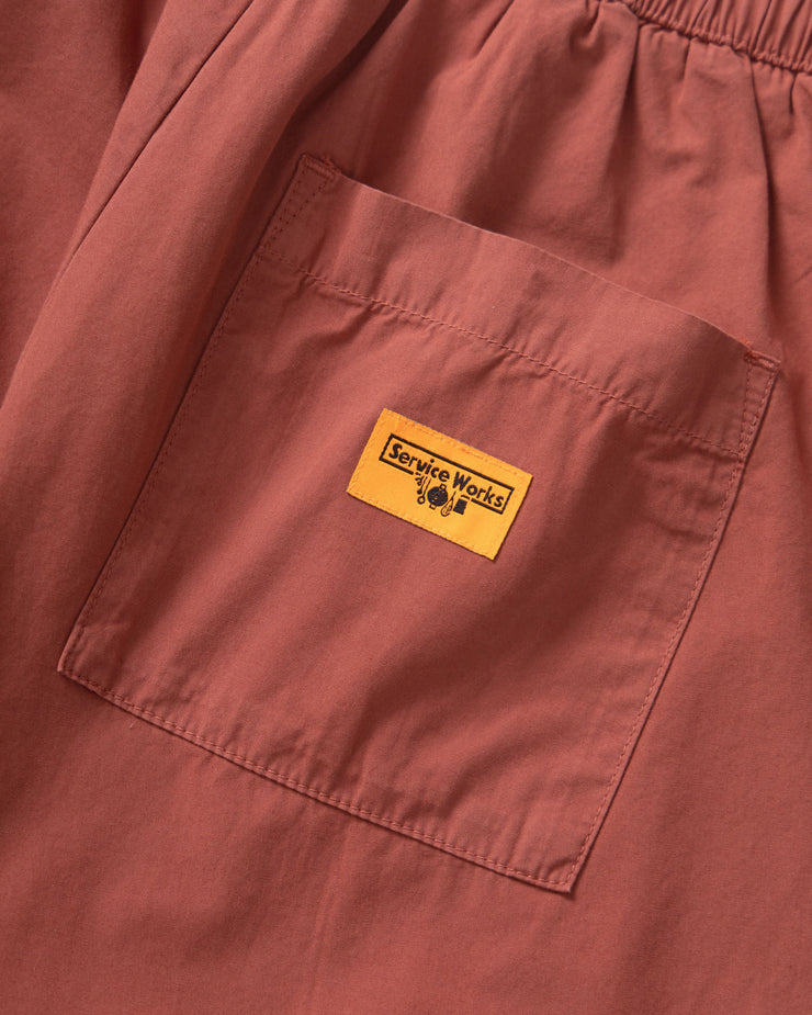Service Works was born in 2020 out of a love for elasticated waists and good food. The founder grew up in a family-run hospitality business, his first jobs were in the kitchen; cleaning, prepping and eventually cooking. During that time he always ended up wearing his chef trousers outside of work and skating in them. Service Works is a homage to this.