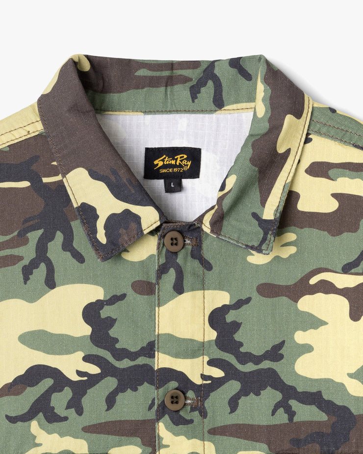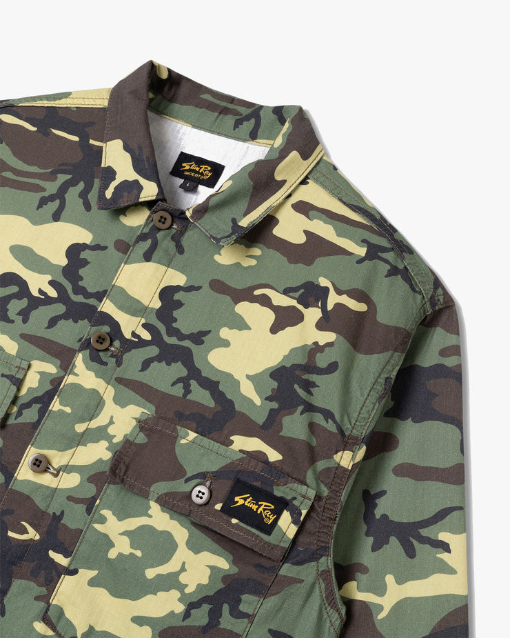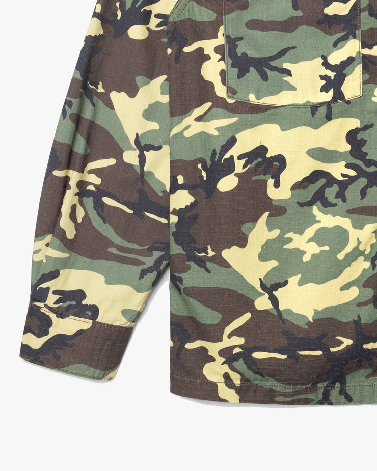Functional details include a button-up front and collar paired with large utility pockets that emphasise practicality without sacrificing style. With its balance of durability and clean design, the CPO Shirt stands as a timeless wardrobe essential. Constructed here in a durable ripstop fabric, with allover woodland camo print.