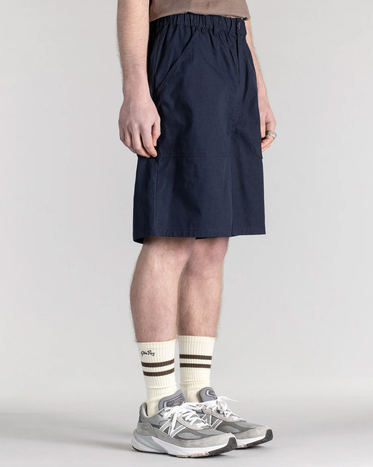 The Jungle Short in Indigo offers a stylish and practical option for warm-weather wear, combining comfort with functionality. Made from 200gsm cotton slub fabric, these shorts are lightweight and breathable. The indigo colour gives a rich, versatile tone that pairs effortlessly with a variety of casual tops or T-shirts, making it a go-to piece for summer.