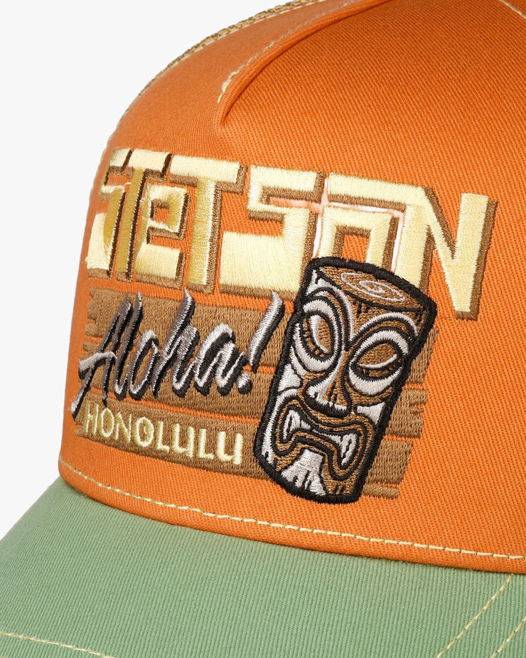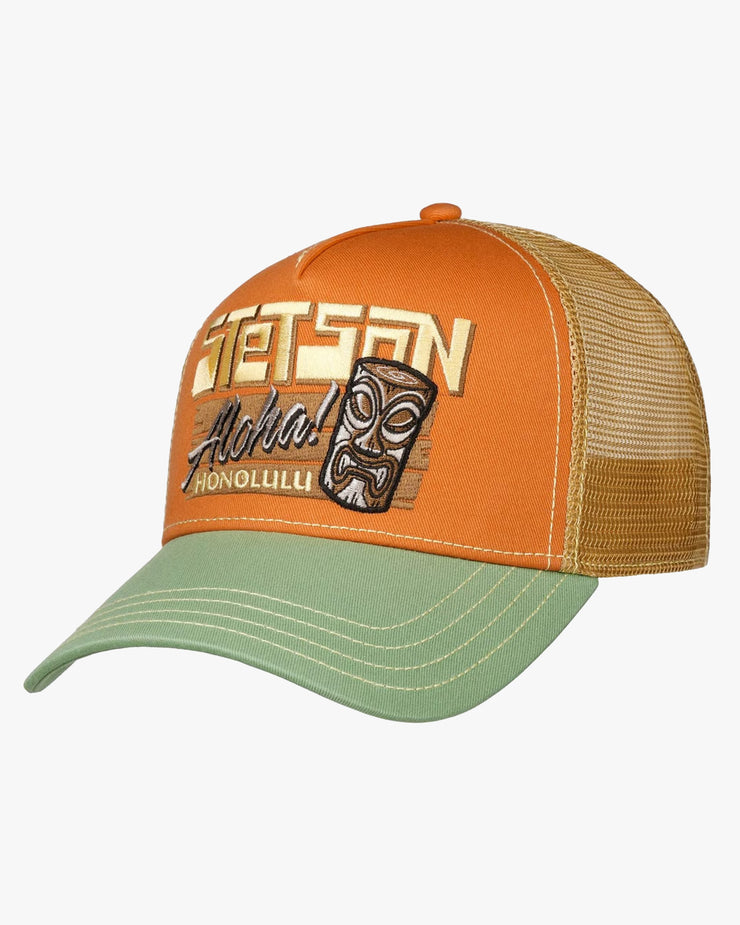 Designed for relaxed everyday wear, this Stetson trucker cap combines classic sporty styling with breathable comfort. The structured crown and curved peak create a familiar baseball-cap silhouette, while the tonal front motif adds subtle Stetson character without overpowering the clean design. Easy to wear and versatile, it complements casual outfits with a laid-back, travel-ready feel.