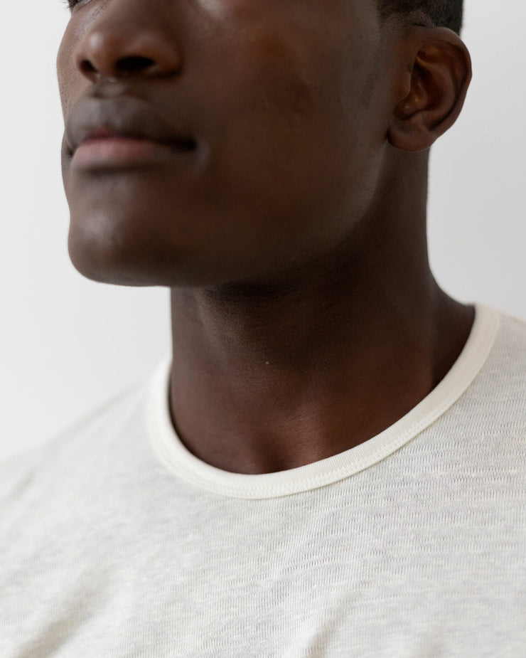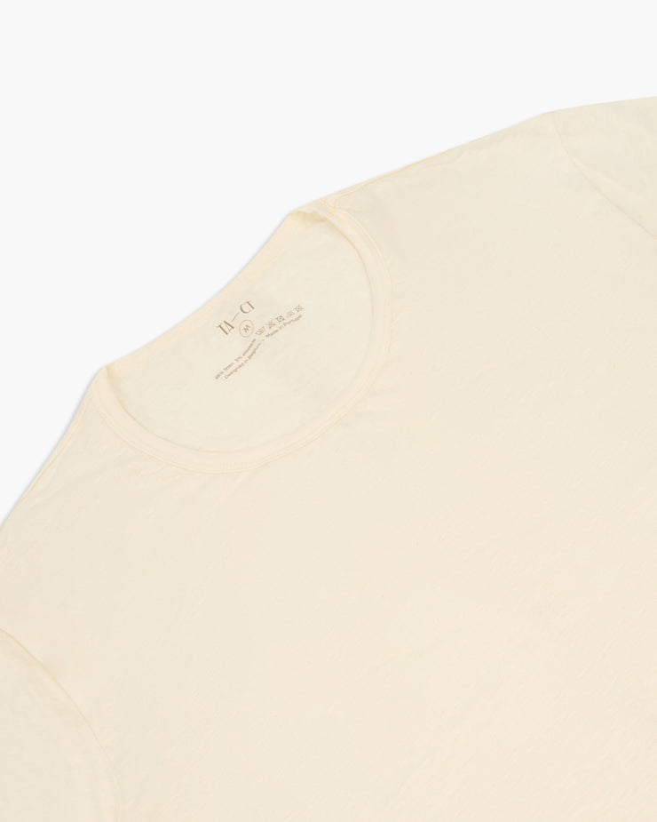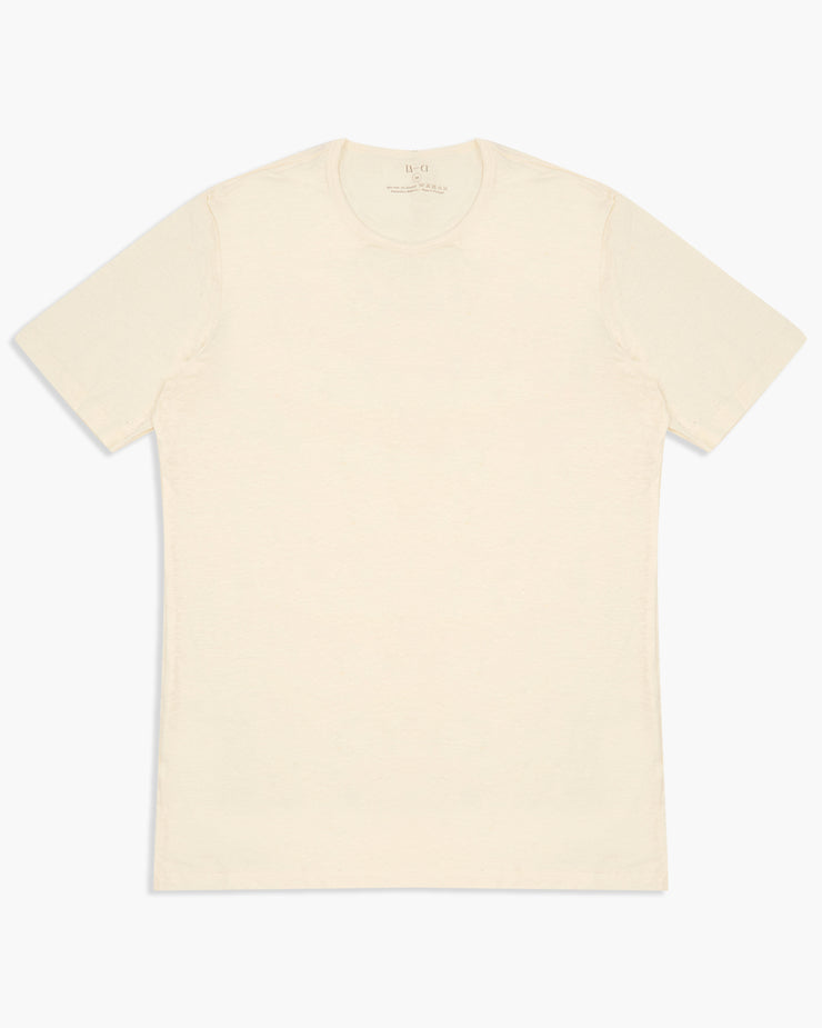 Short-sleeved classic T-shirt with a crew neck and a slightly tight fit. Please choose your usual size (see size chart) if you wish to wear the T-shirt as underwear or close to the skin, and the size above if you want a more relaxed fit.