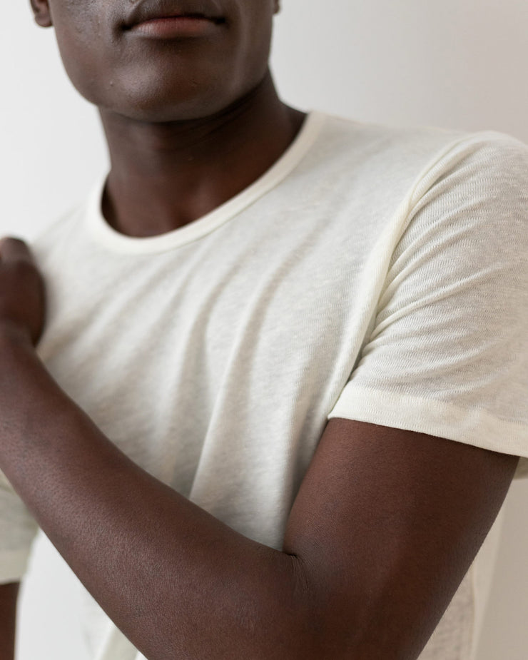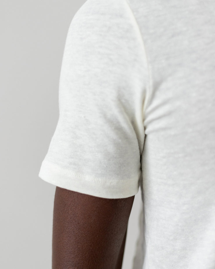 To lengthen the life of this linen jersey garment, wash it on a gentle cycle using a mild detergent without bleach or optical brightening agents.